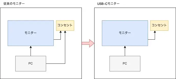 これ、USB-C を指すだけで充電しながらモニターと繋げてくれる神機能です