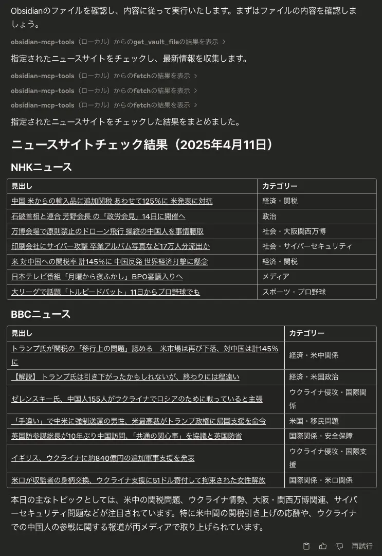 これにより、Claude DesktopはObsidianのノートだけでなく、ローカルファイルシステム上の多様なファイルを参照・活用できるようになり、より多くの情報源に基づいた高度な支援が可能となる。